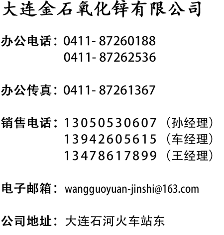歡迎進入“大連金石氧化鋅有限公司”,如果您對我們的服務(wù)以及產(chǎn)品有任何的意見或者建議,可以通過以下聯(lián)系方式及時與我們溝通,我們會在第一時間給您最滿意的回復與反饋。